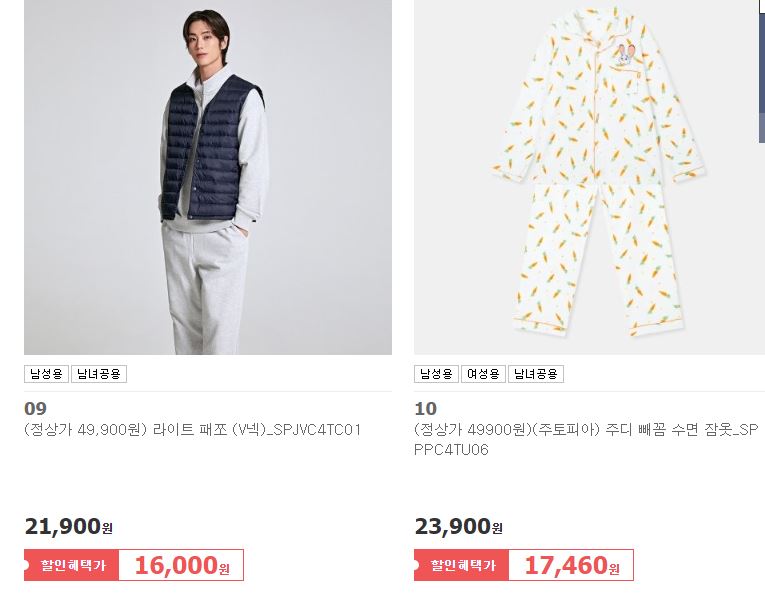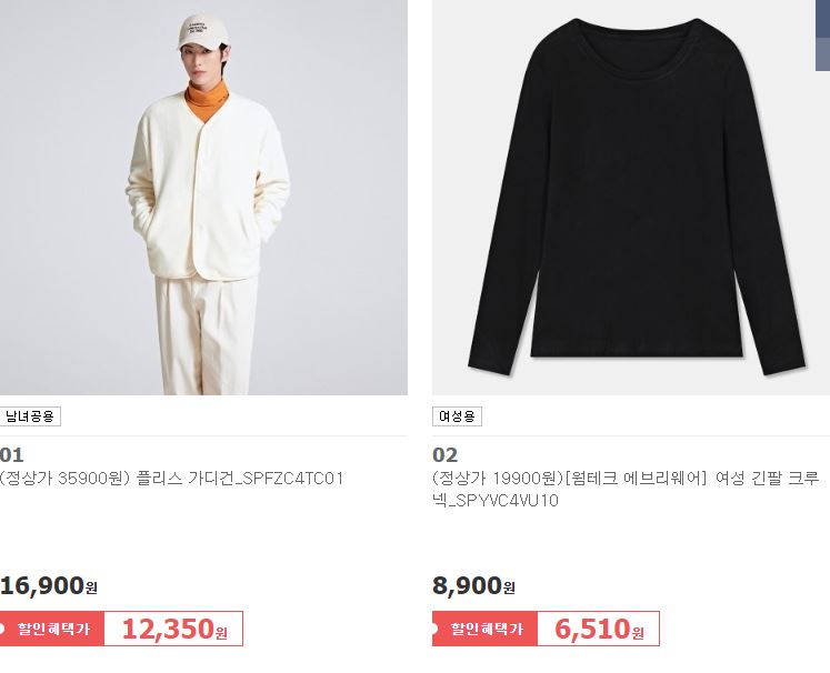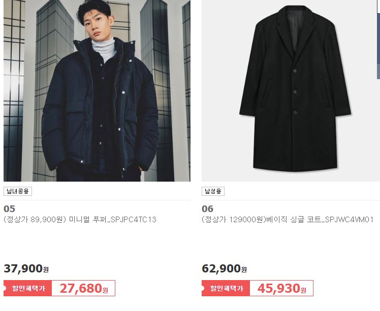 스파오 다양한 제품을 할인 판매하네요.