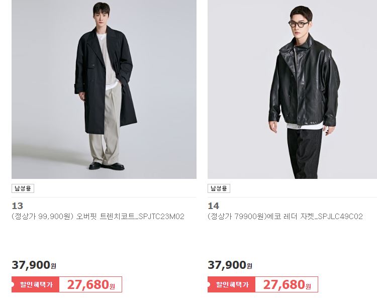 할인 품목 : 티셔츠, 점퍼, 자켓 등