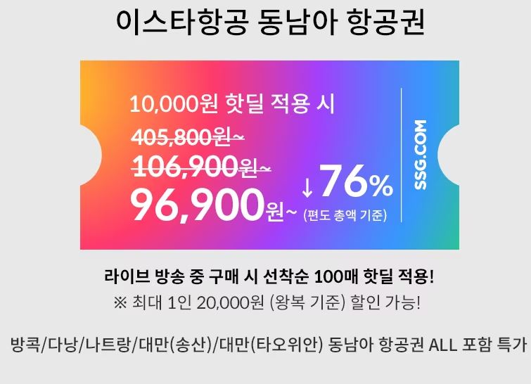 SSG LIVE 항공권 할인 이벤트를 진행하네요.