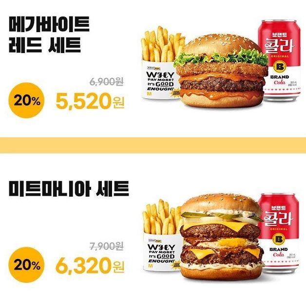할인 메뉴 : 코울슬로 치킨 버거 세트, 미타마니아 세트 등