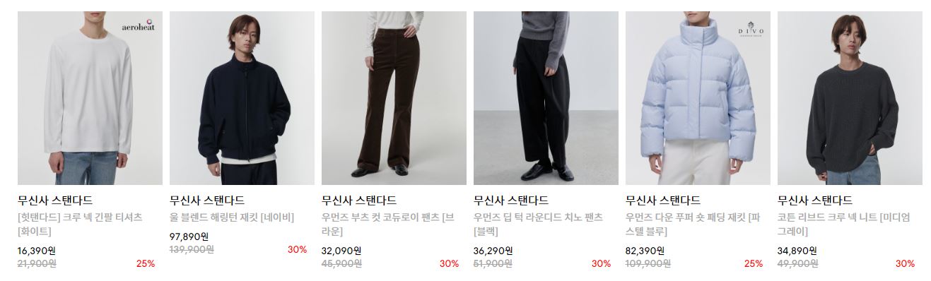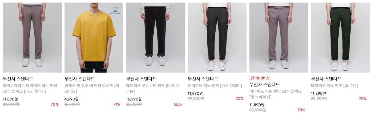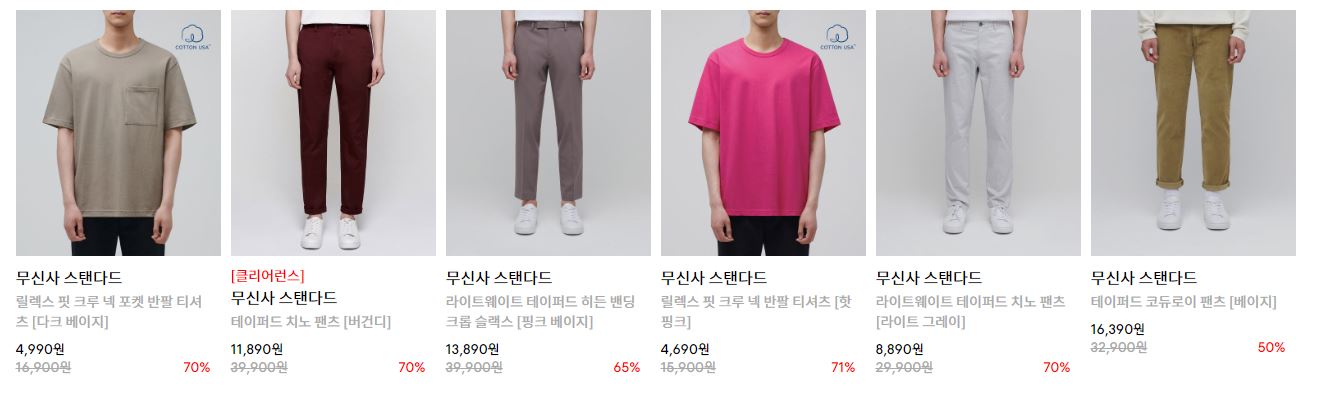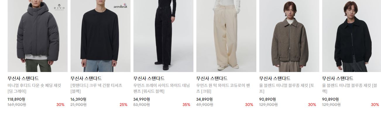 무신사 스탠다드 다양한 제품을 할인 판매하네요.