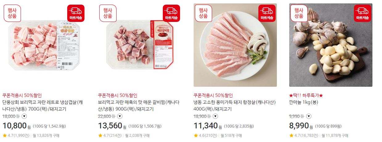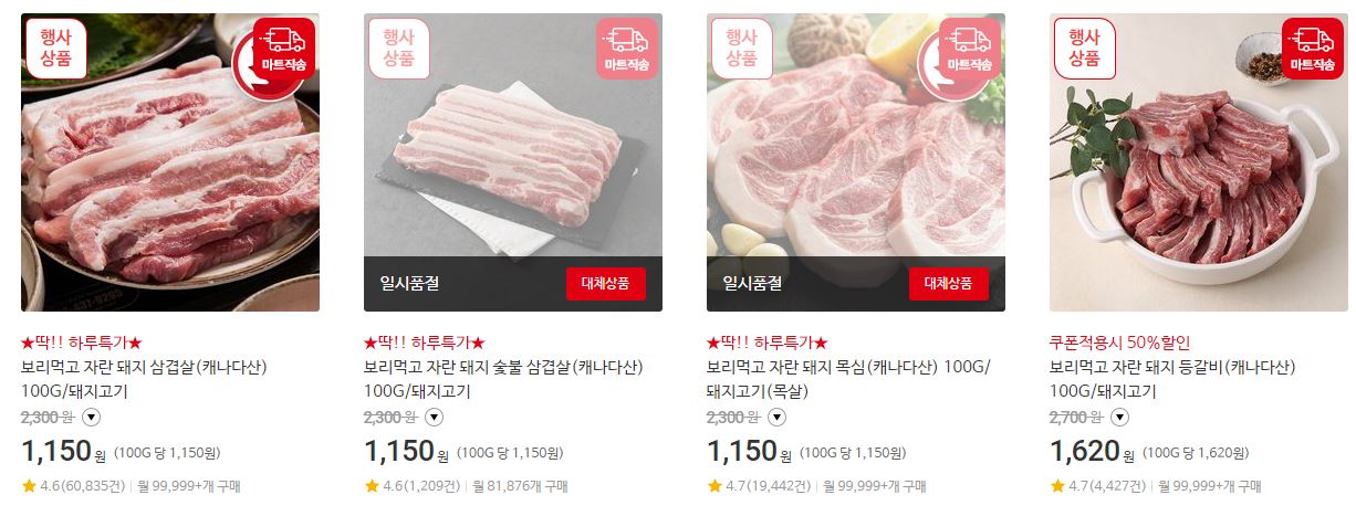할인 품목 : 삼겹살, 항정살 등