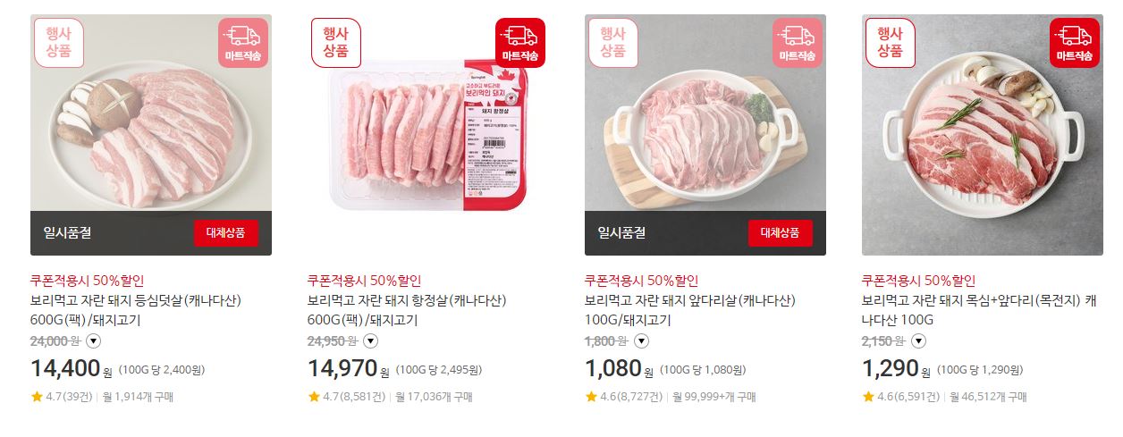 홈플러스 보리먹인 돼지 할인 이벤트를 진행하네요.