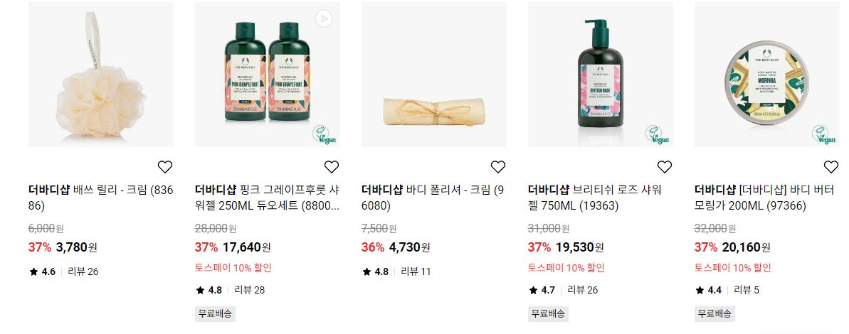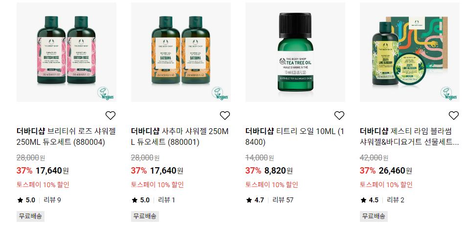 할인 품목 : 샴푸, 샤워젤, 바디로션 등