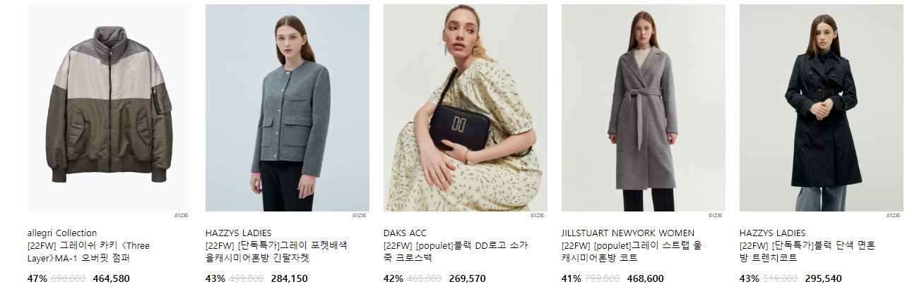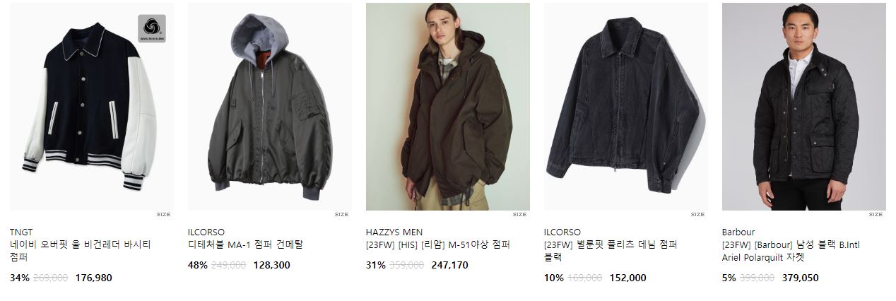 할인 품목 : 코트, 점퍼, 자켓 등