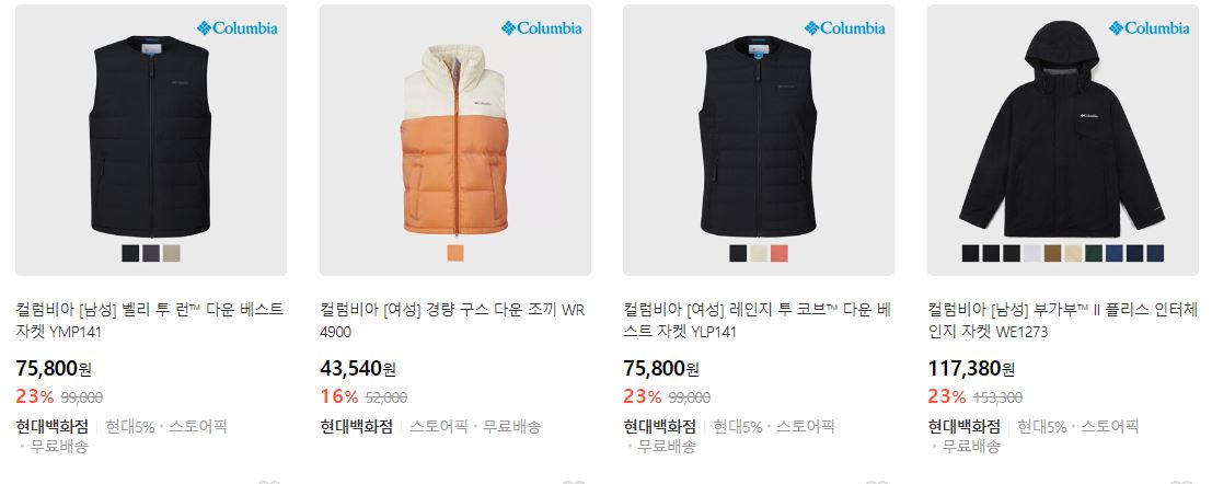 컬럼비아 다양한 제품을 할인 판매하네요.