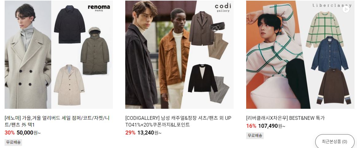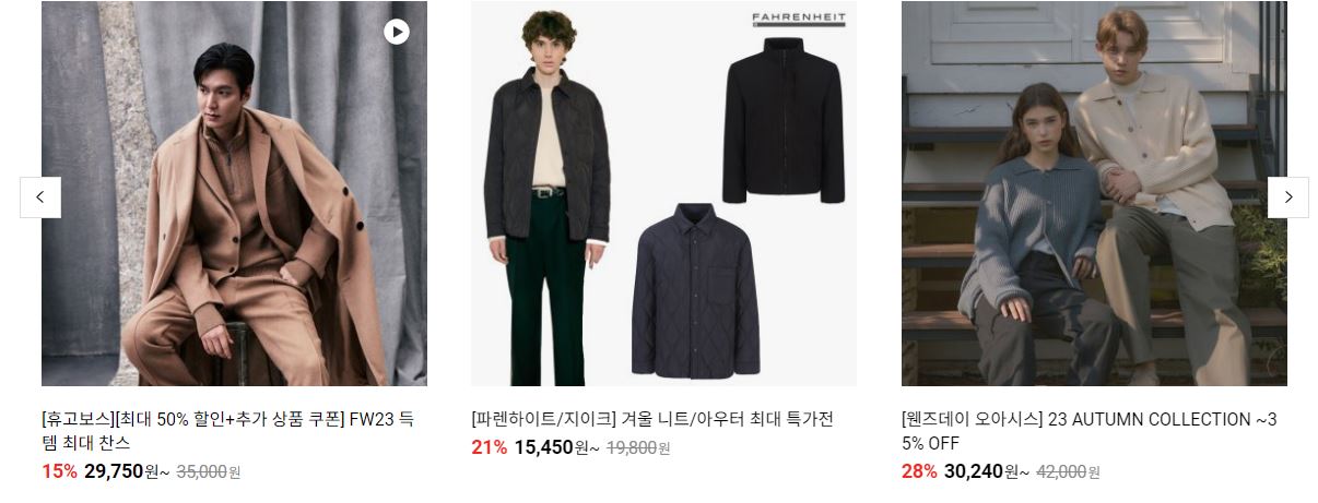 할인 품목 : 코트, 니트, 악세사리 등