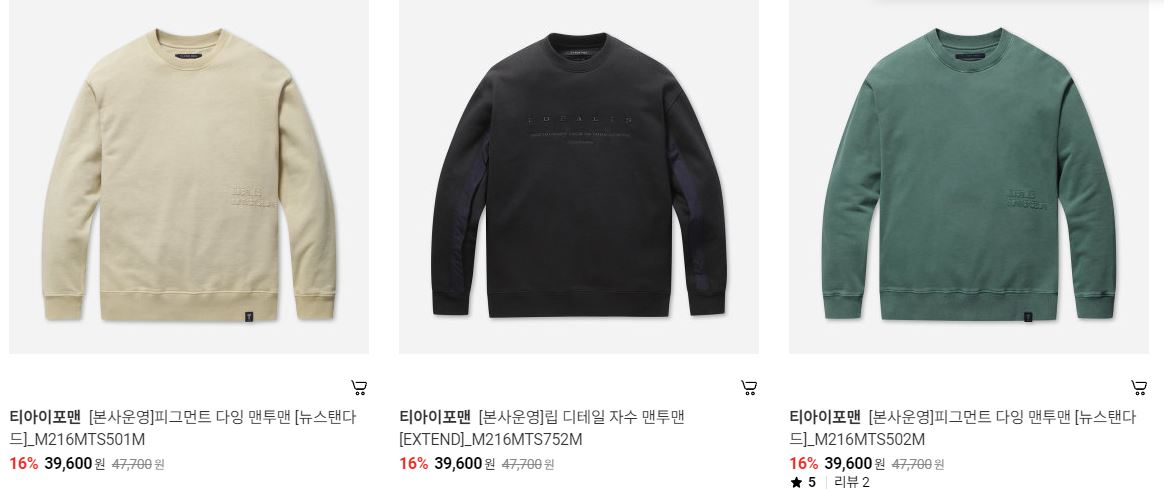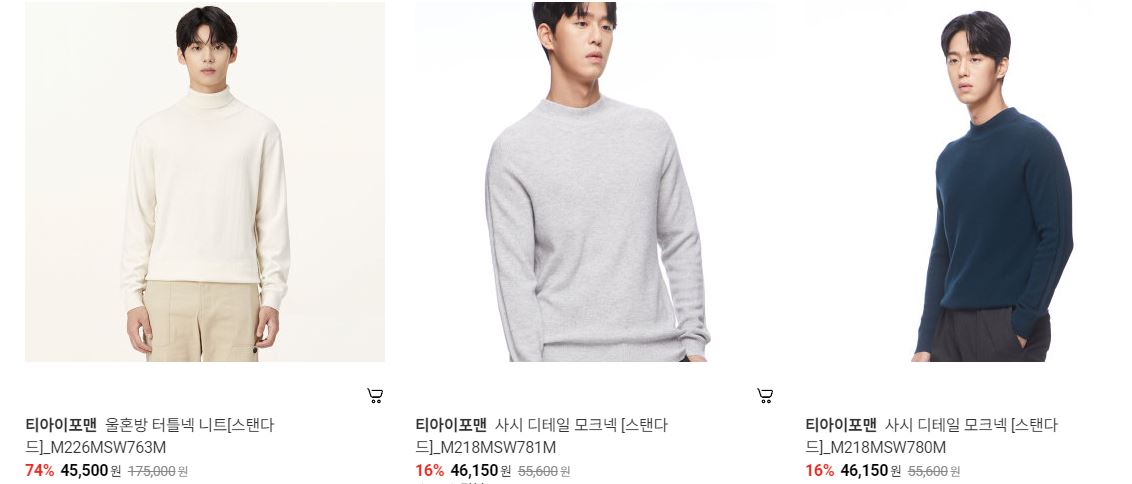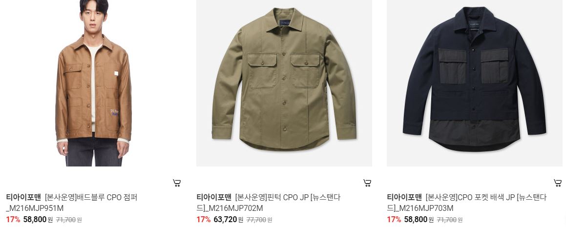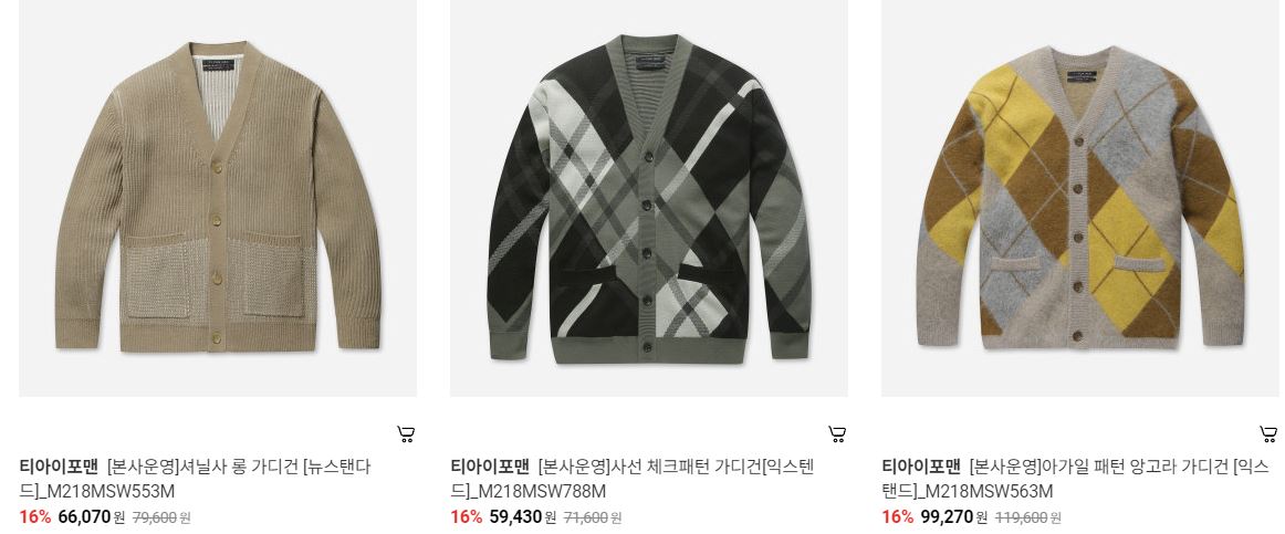 할인 품목 : 자켓, 가디건, 맨투맨 등