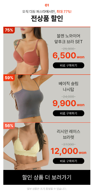 할인 품목 : 브라, 팬티, 언더웨어, 나시탑, 이너퍼퓸 등