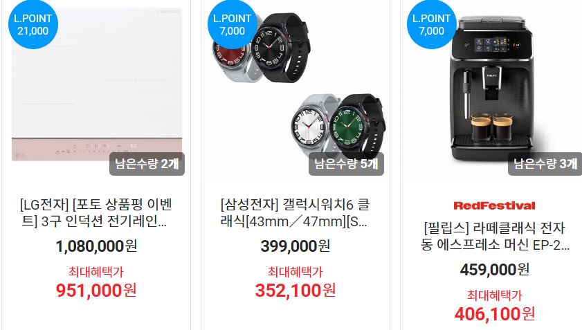 원데이핫딜, 한정수량 특가 등