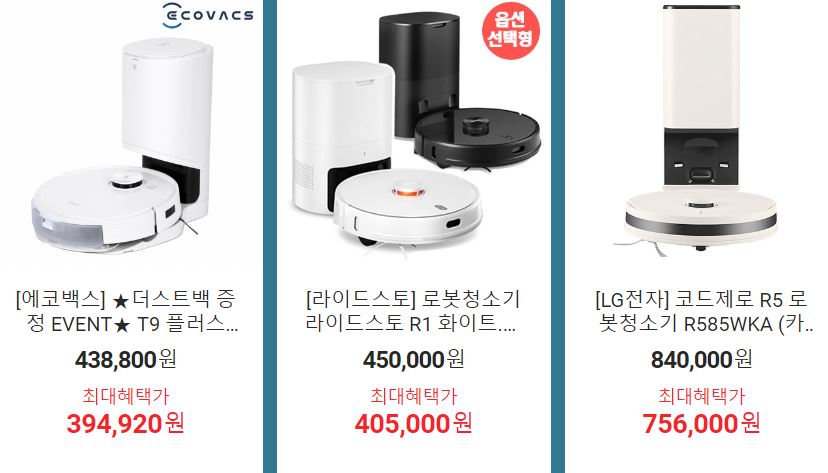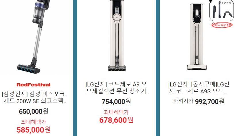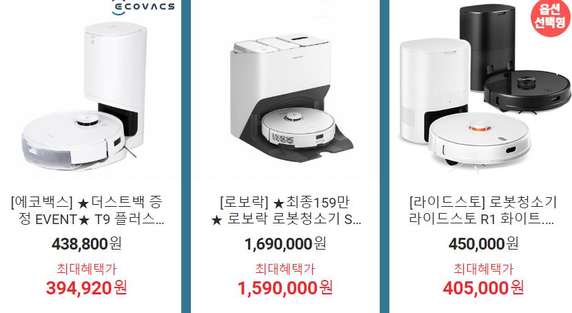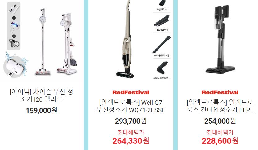 할인 품목 : 무선 청소기, 로봇 청소기 등