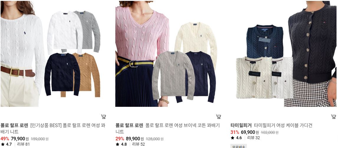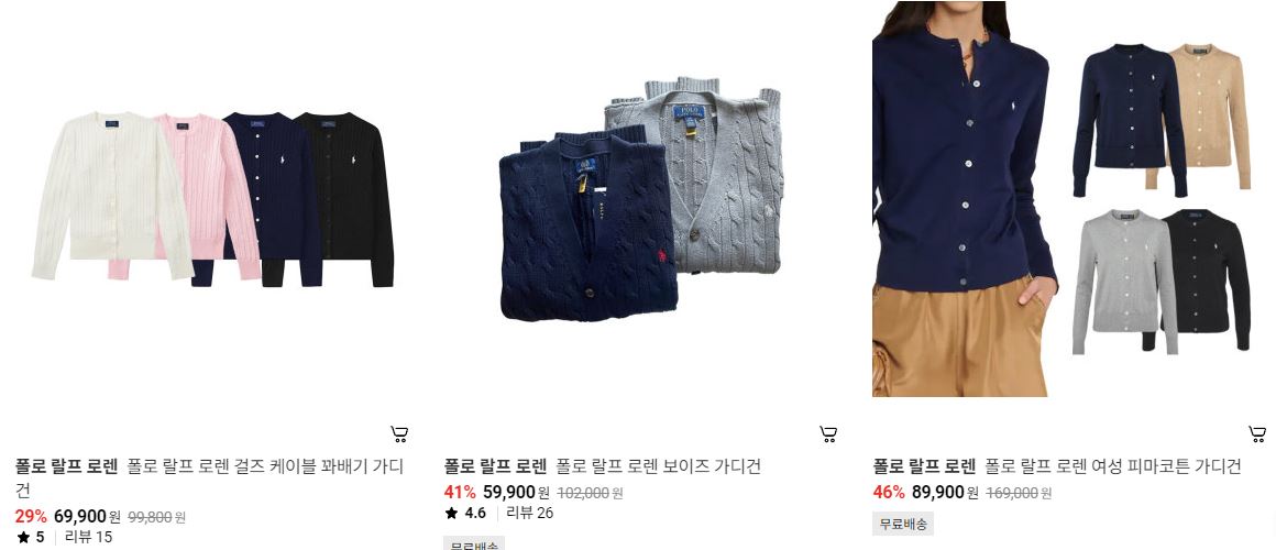 할인 품목 : 가디건, 티셔츠 등