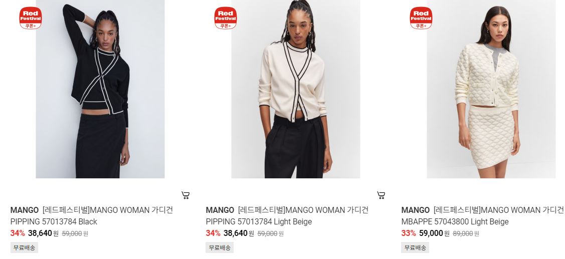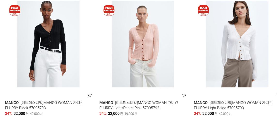 할인 품목 : 가디건, 자켓, 원피스 등