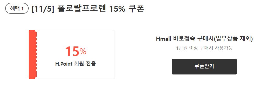 폴로랄프로렌 15% 쿠폰 + 카드 5% 할인 정보 [링크]