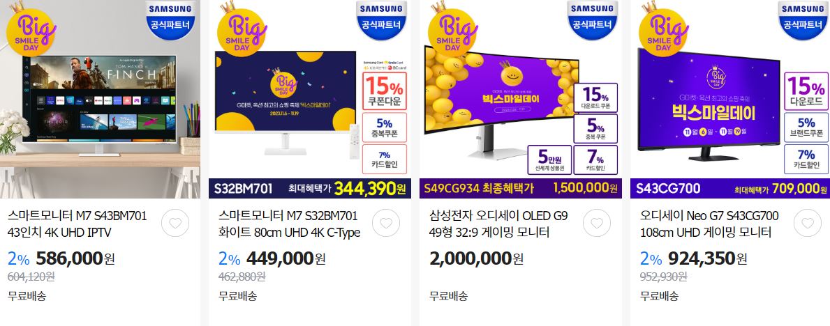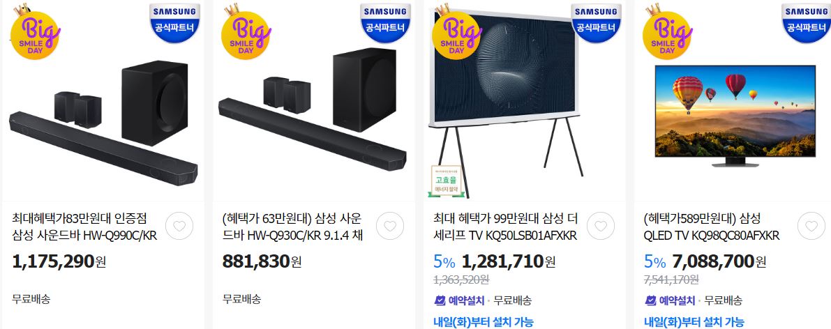 할인 품목 : 사운드바, 휴대폰, 모니터, 티비 등