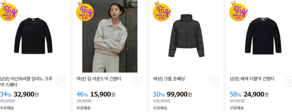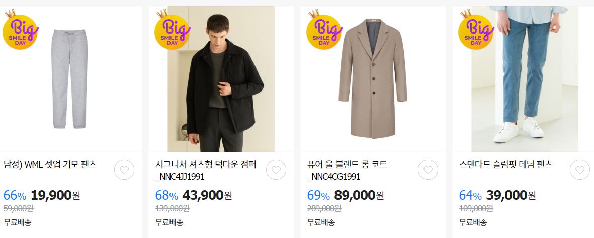 할인 품목 : 코트, 점퍼, 티셔츠 등