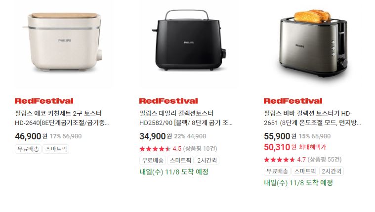 할인 품목 : 면도기, 드라이기, 커피메이커 등
