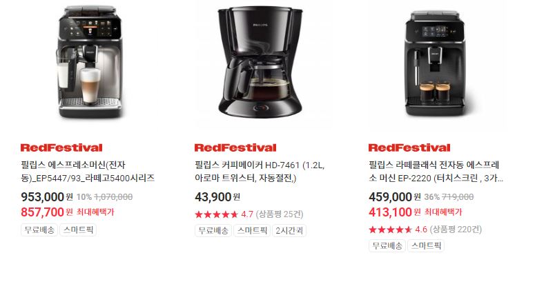 할인 품목 : 면도기, 드라이기, 커피메이커 등