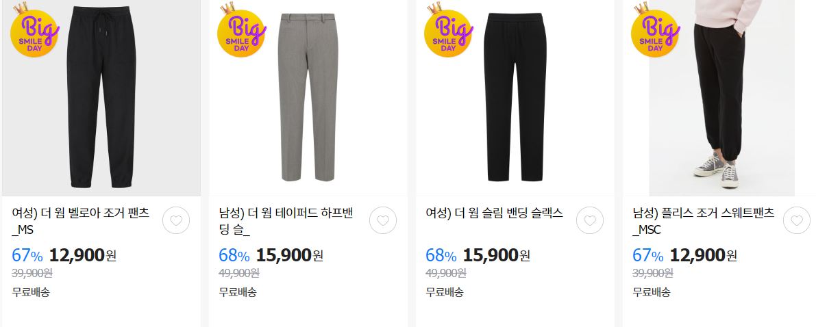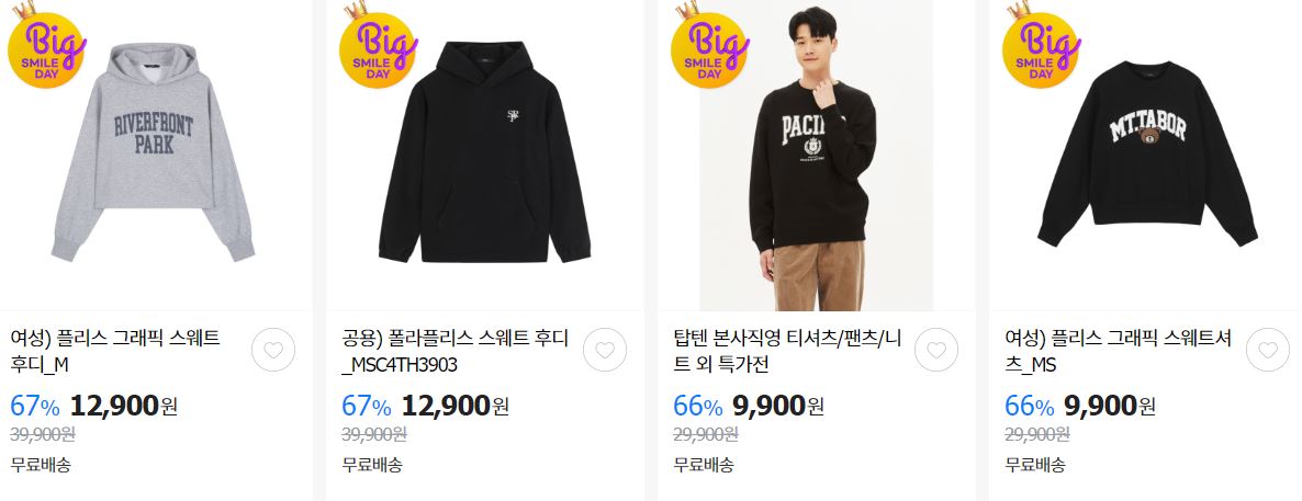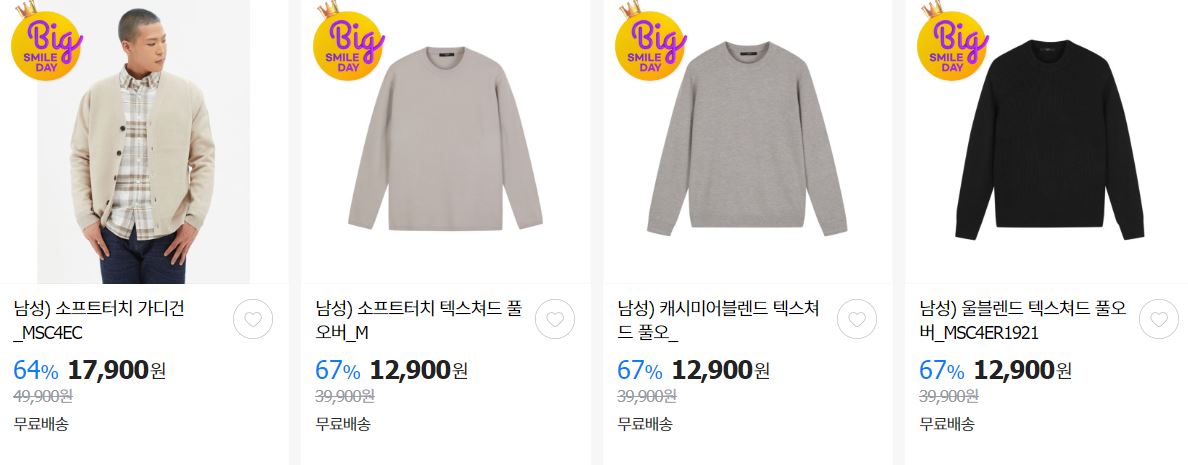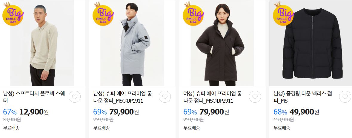 할인 품목 : 점퍼, 니트, 팬츠 등