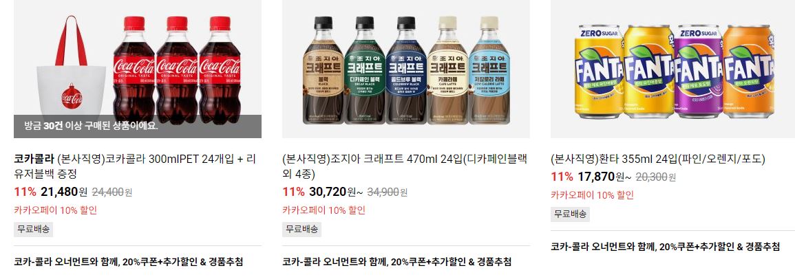 할인 품목 : 코카콜라, 환타, 조지아 크래프트 등
