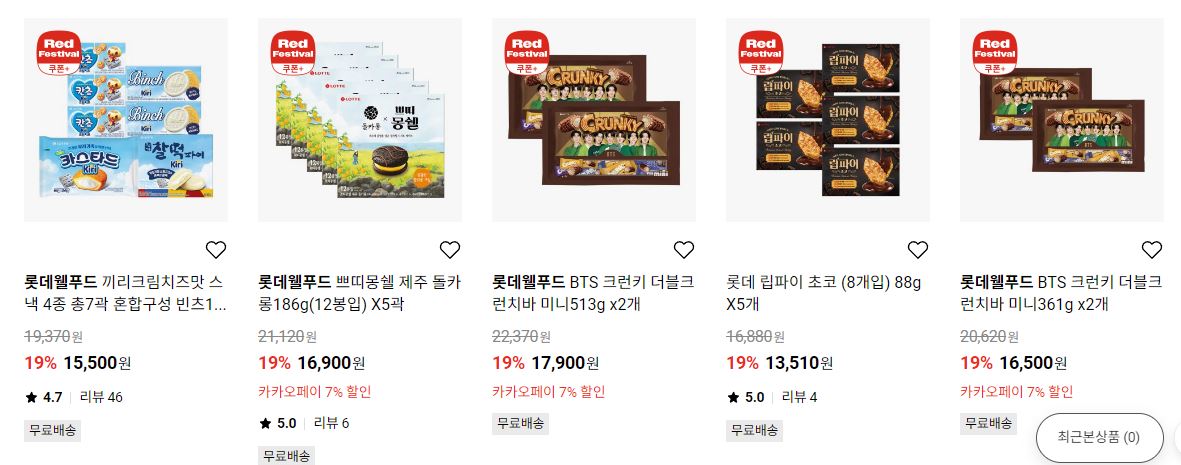 롯데웰푸드 다양한 제품을 할인 판매하네요.