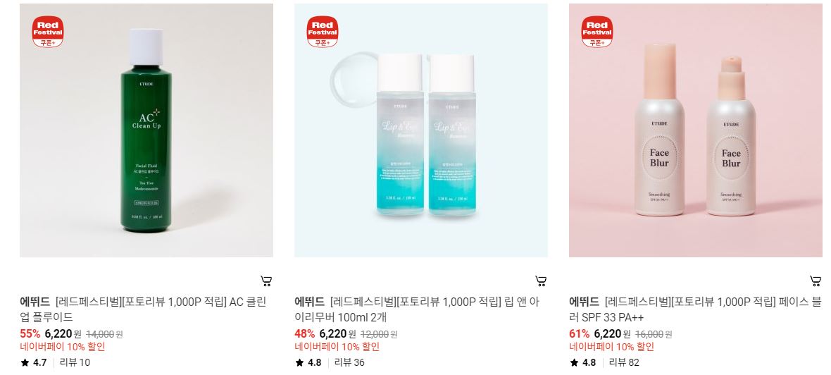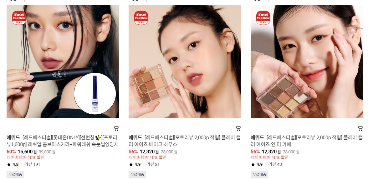 에뛰드 다양한 제품을 할인 판매하네요.