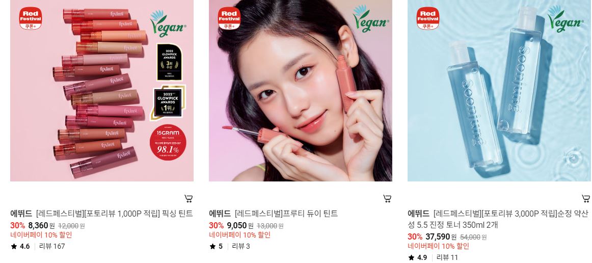 할인 품목 : 클렌징폼, 틴트 등