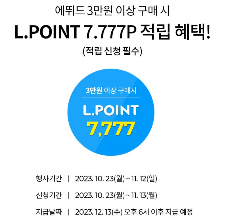 3만원 이상 구매시 L포인트 7777 적립