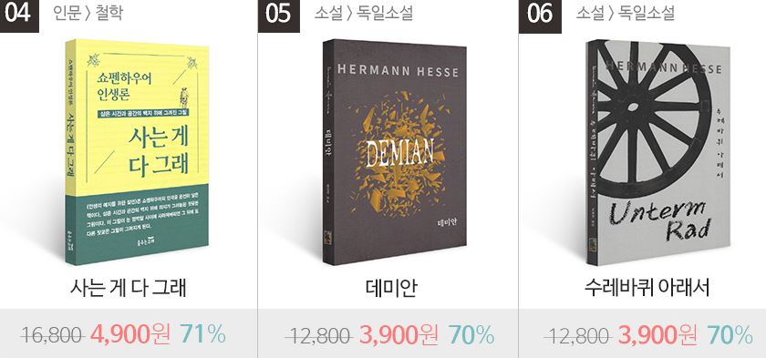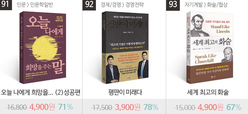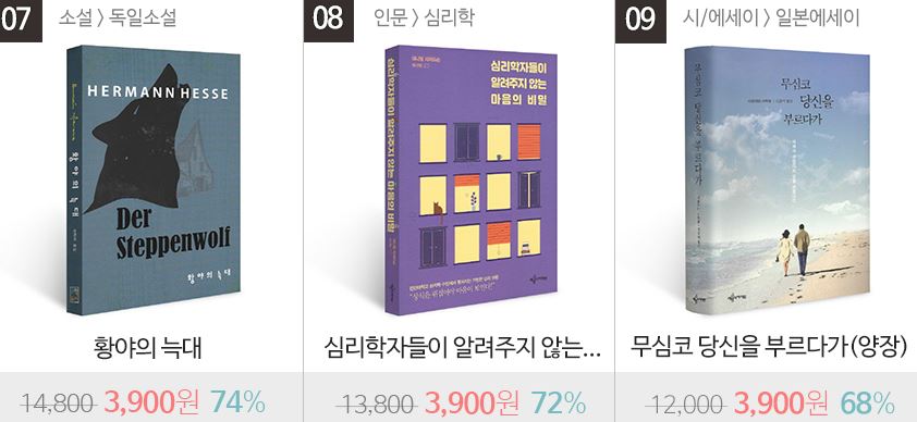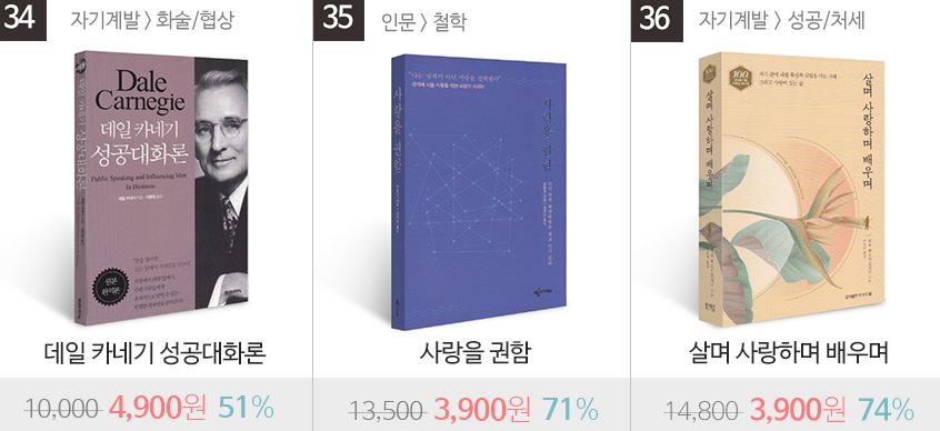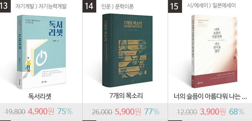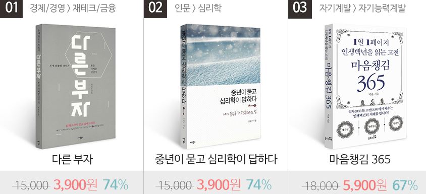 할인 장르 : 자기계발, 소설, 인문, 에세이 등