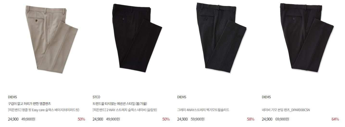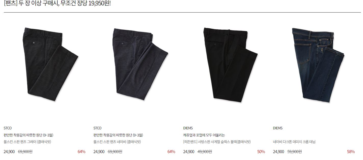 할인 품목 : 팬츠, 넥타이