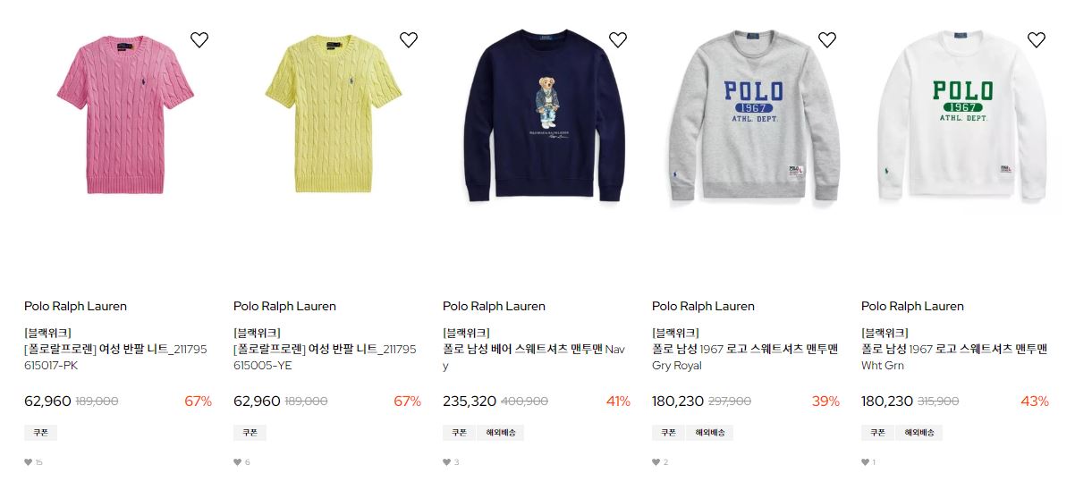폴로 랄프로렌 다양한 제품을 할인 판매하네요.