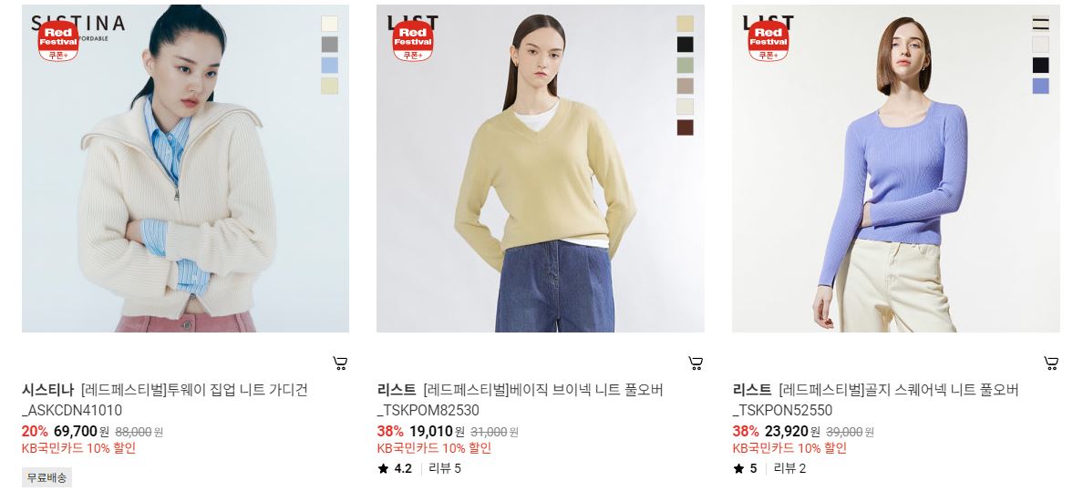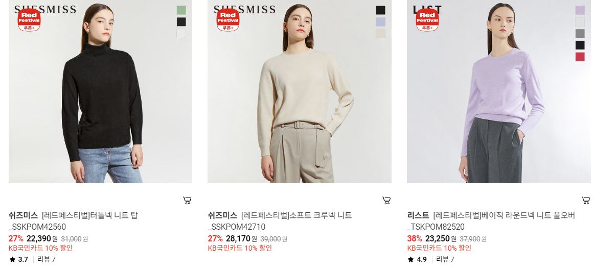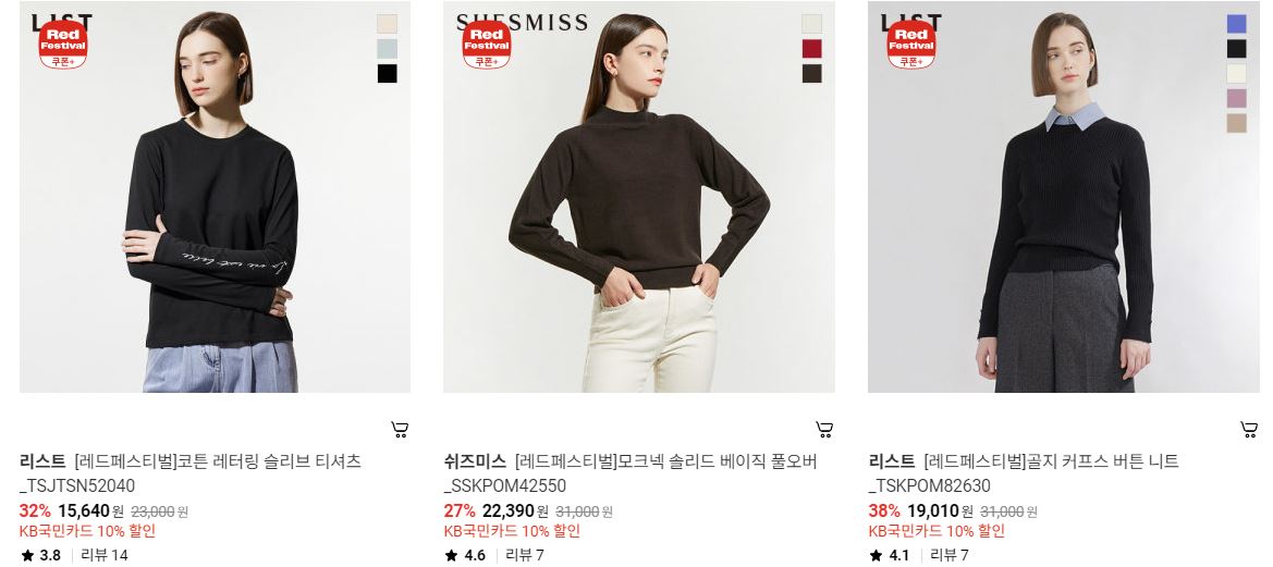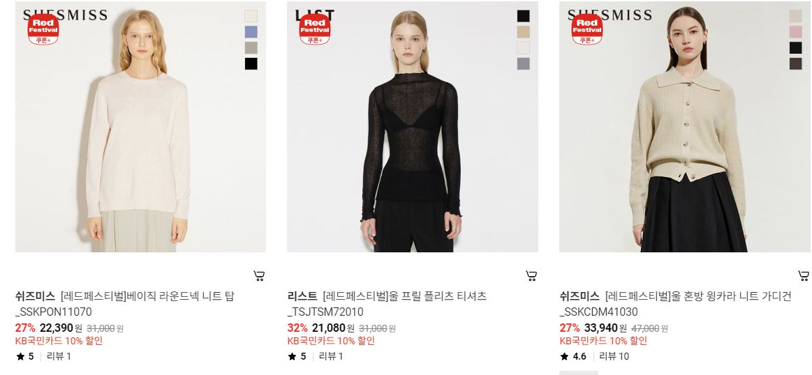 할인 품목 : 니트, 팬츠, 코트 등