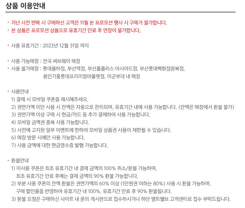 써브웨이 모바일 금액권 할인 정보 포스팅입니다.