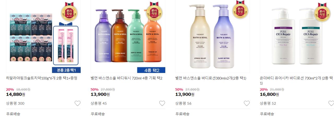 할인 품목 : 샴푸, 세제, 바디로션 등