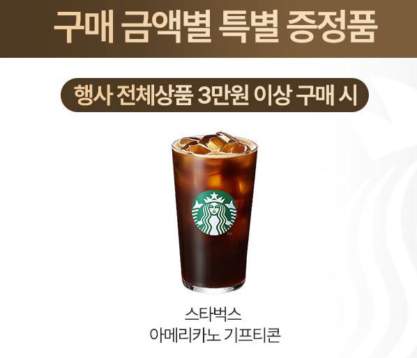3만원 이상 구입 시 스타벅스 아메리카노 기프티콘 증정