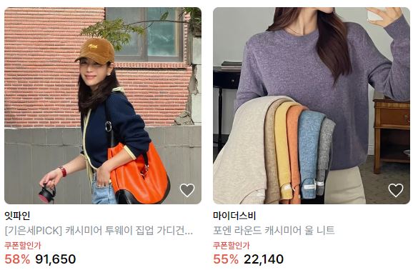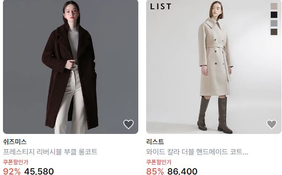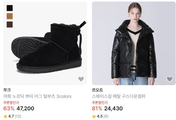 할인 품목 : 니트, 점퍼, 코트, 운동화 등
