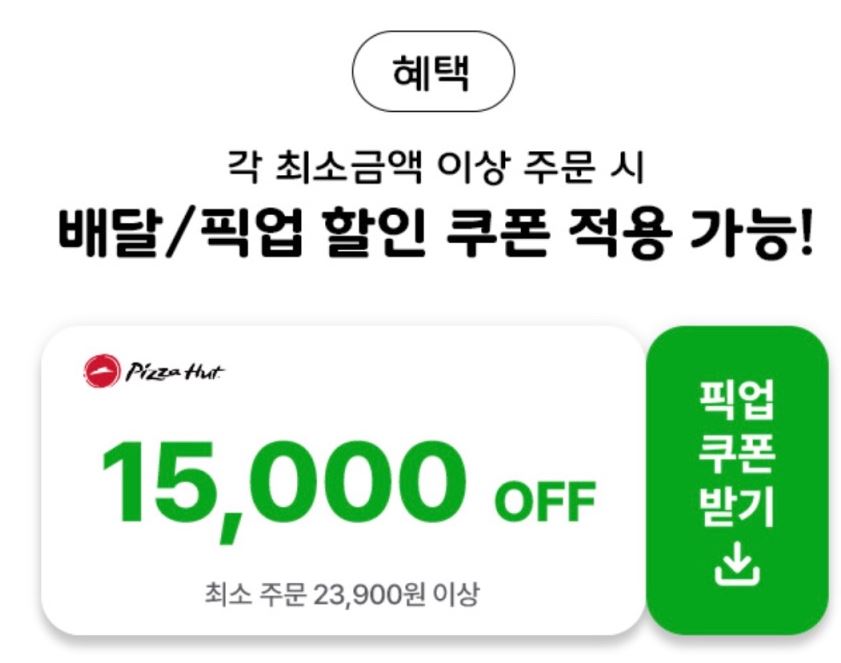 해피오더 피자헛 배달/픽업 최대 15000원 할인