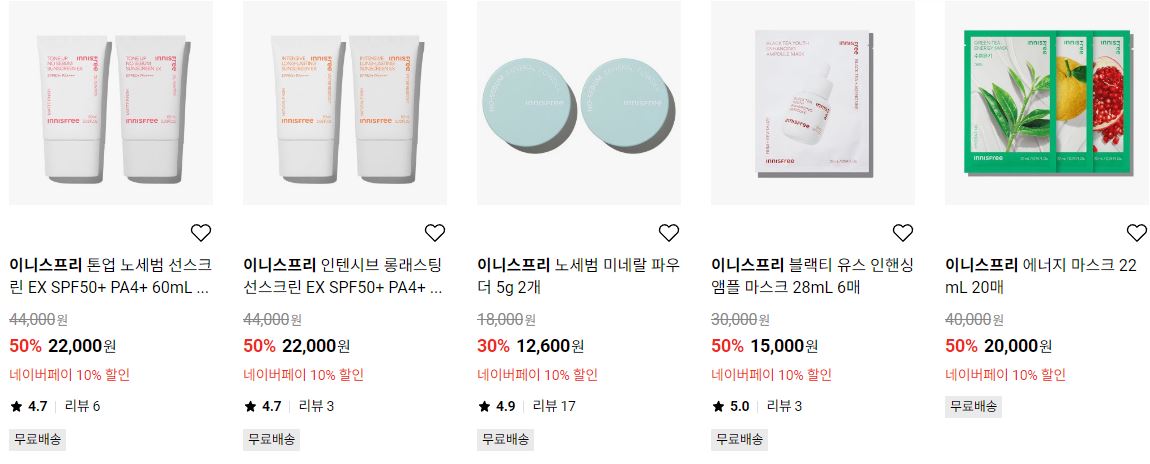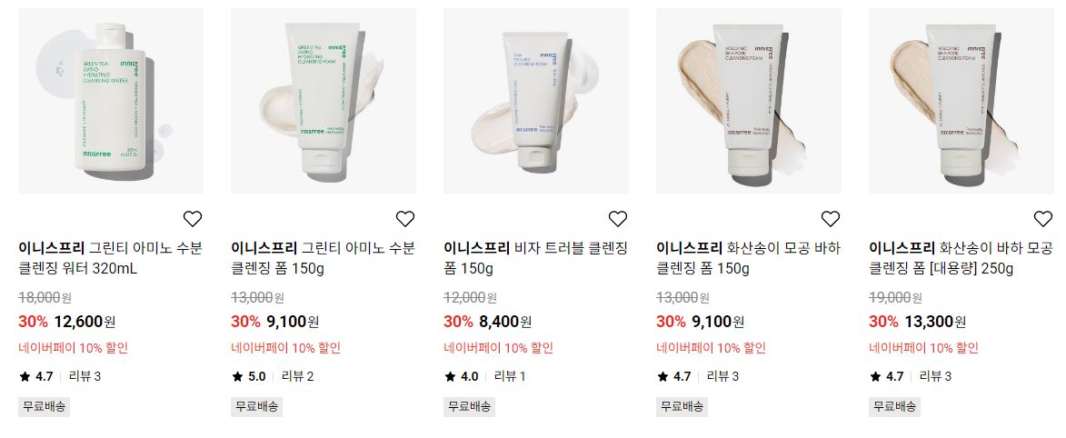 할인 품목 : 클렌징 폼, 스킨, 로션 등