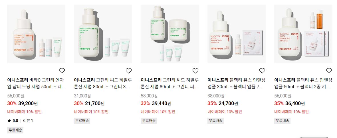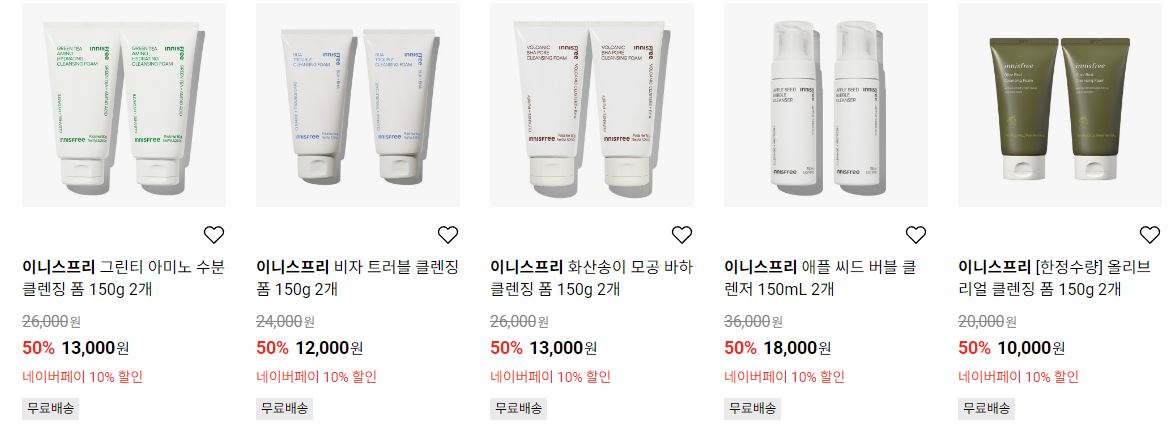 할인 품목 : 클렌징 폼, 스킨, 로션 등