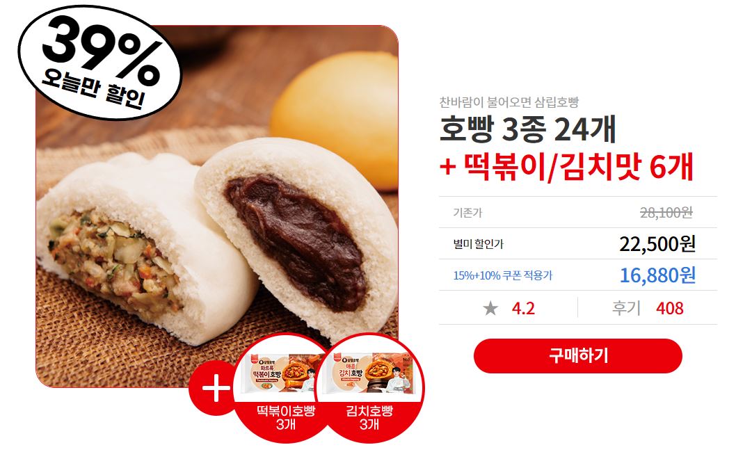 구성 : 호빵 3종 24개 + 떡볶이 맛 3개 + 김치맛 3개