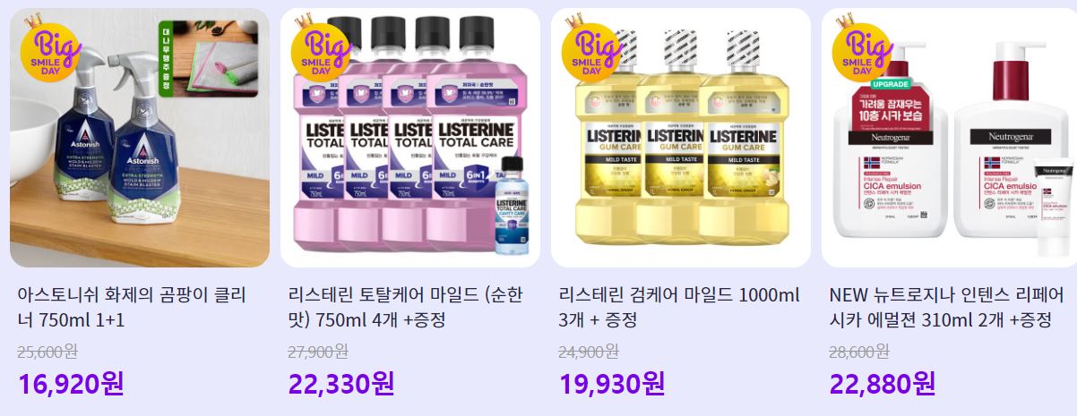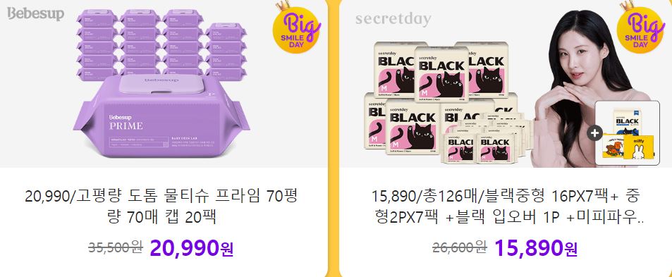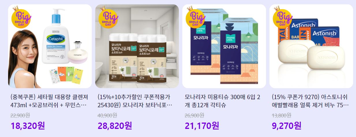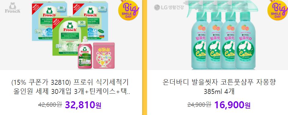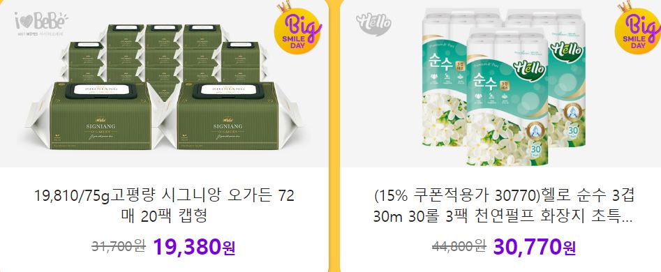 할인 품목 : 비누, 물티슈, 로션 등