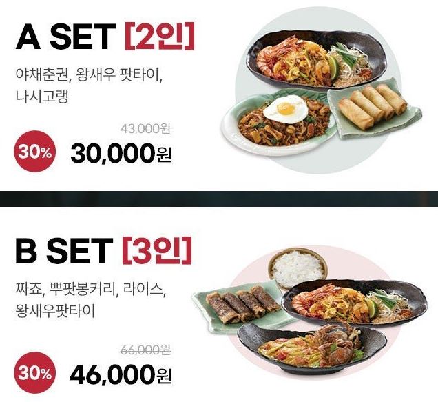 할인 품목 : 2인/3인/4인 세트