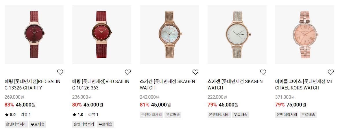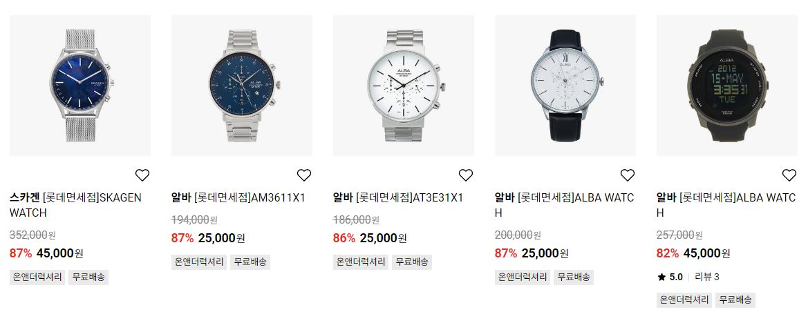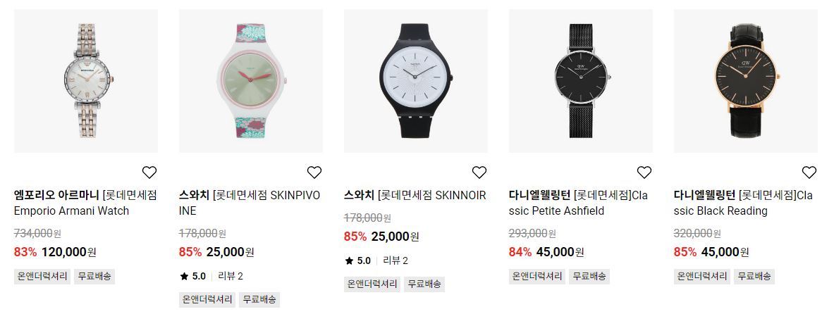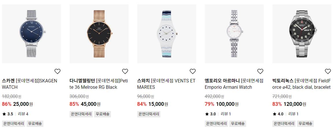 할인 품목 : 시계, 가방, 악세사리 등