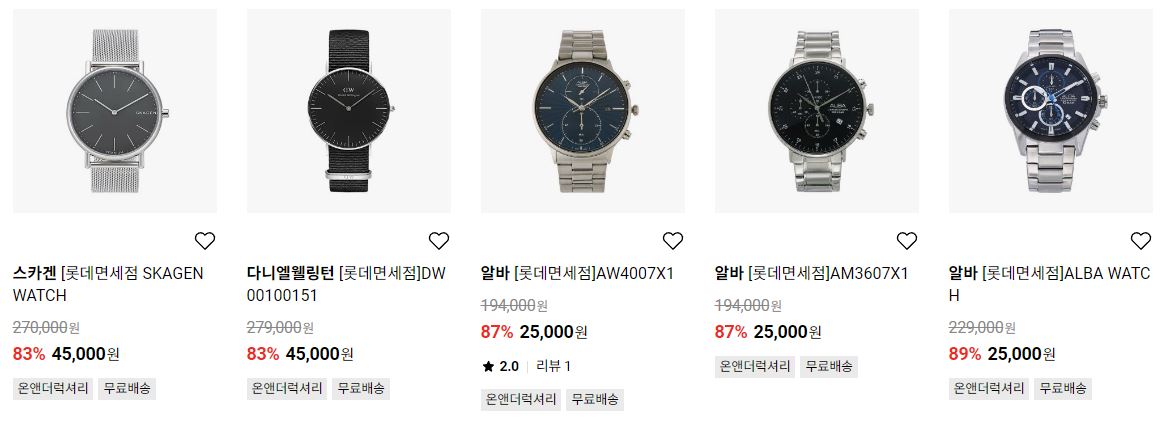 할인 품목 : 시계, 가방, 악세사리 등
