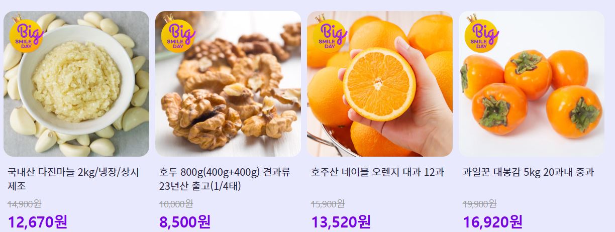 할인 품목 : 음료, 가공식품, 과일 등