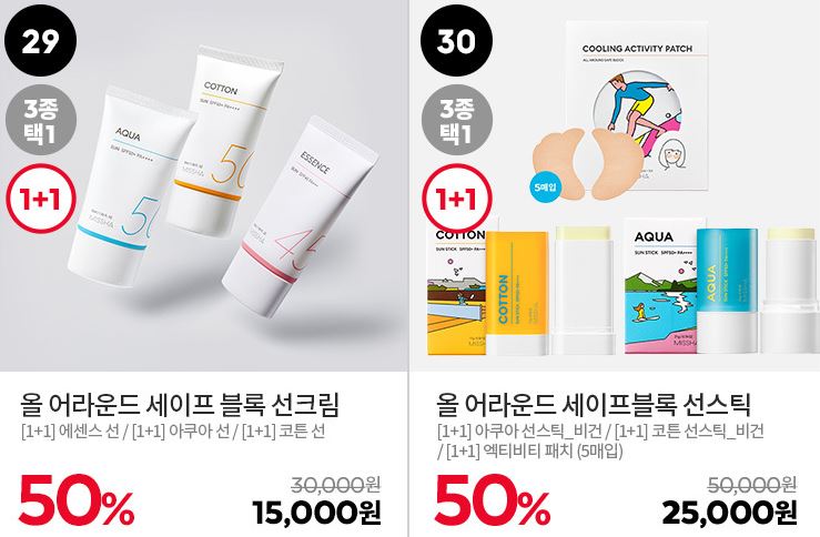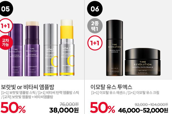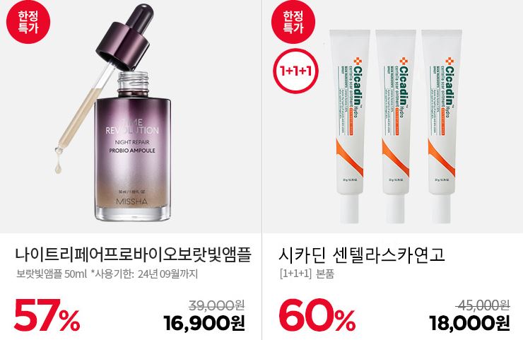 할인 품목 : 앰플, 선크림, 수분크림 등