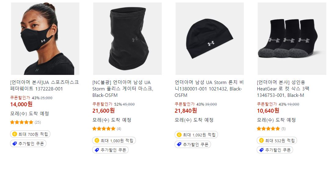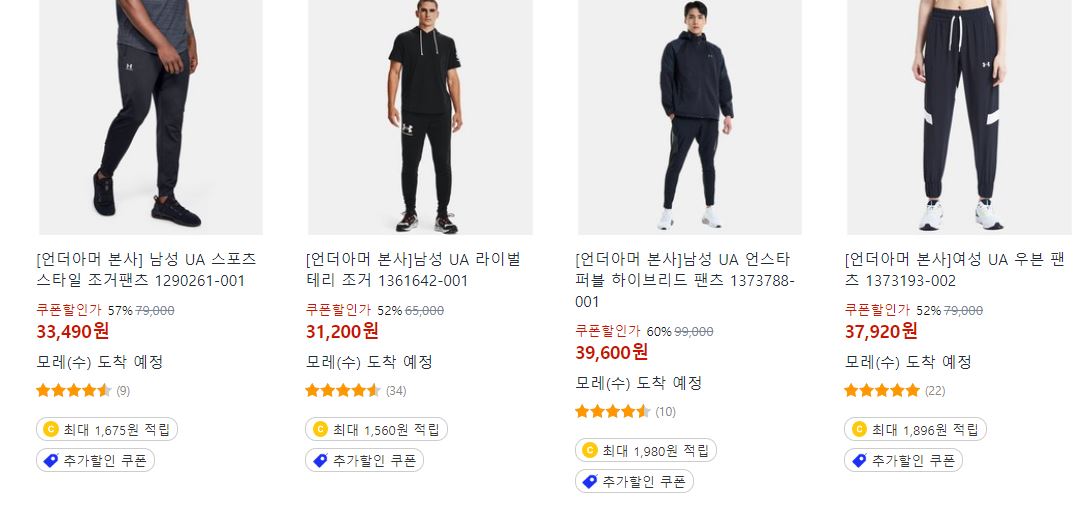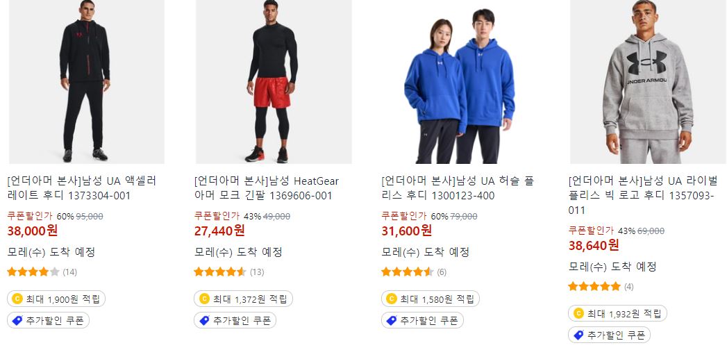 언더아머 다양한 제품을 할인 판매하네요.