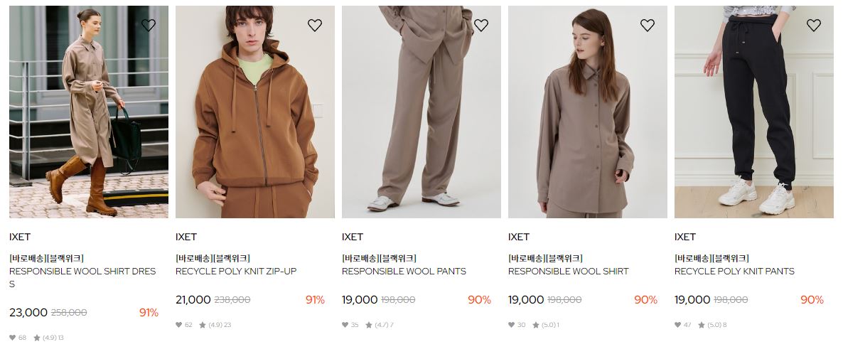 할인 품목 : 티셔츠, 팬츠, 신발 등
