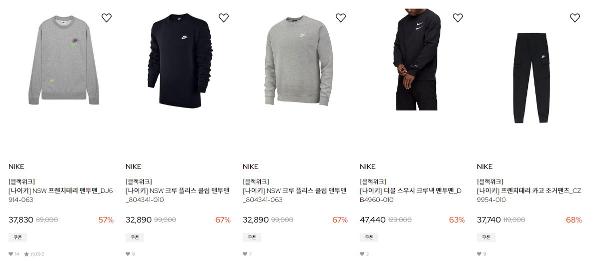 할인 품목 : 티셔츠, 팬츠, 신발 등