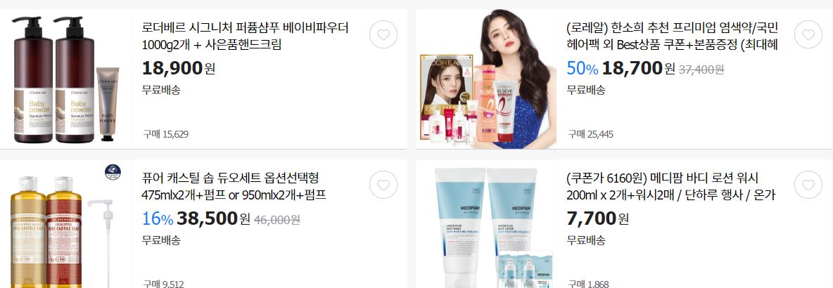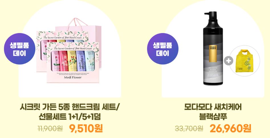 할인 품목 : 섬유유연제, 핸드크림, 샴푸 등